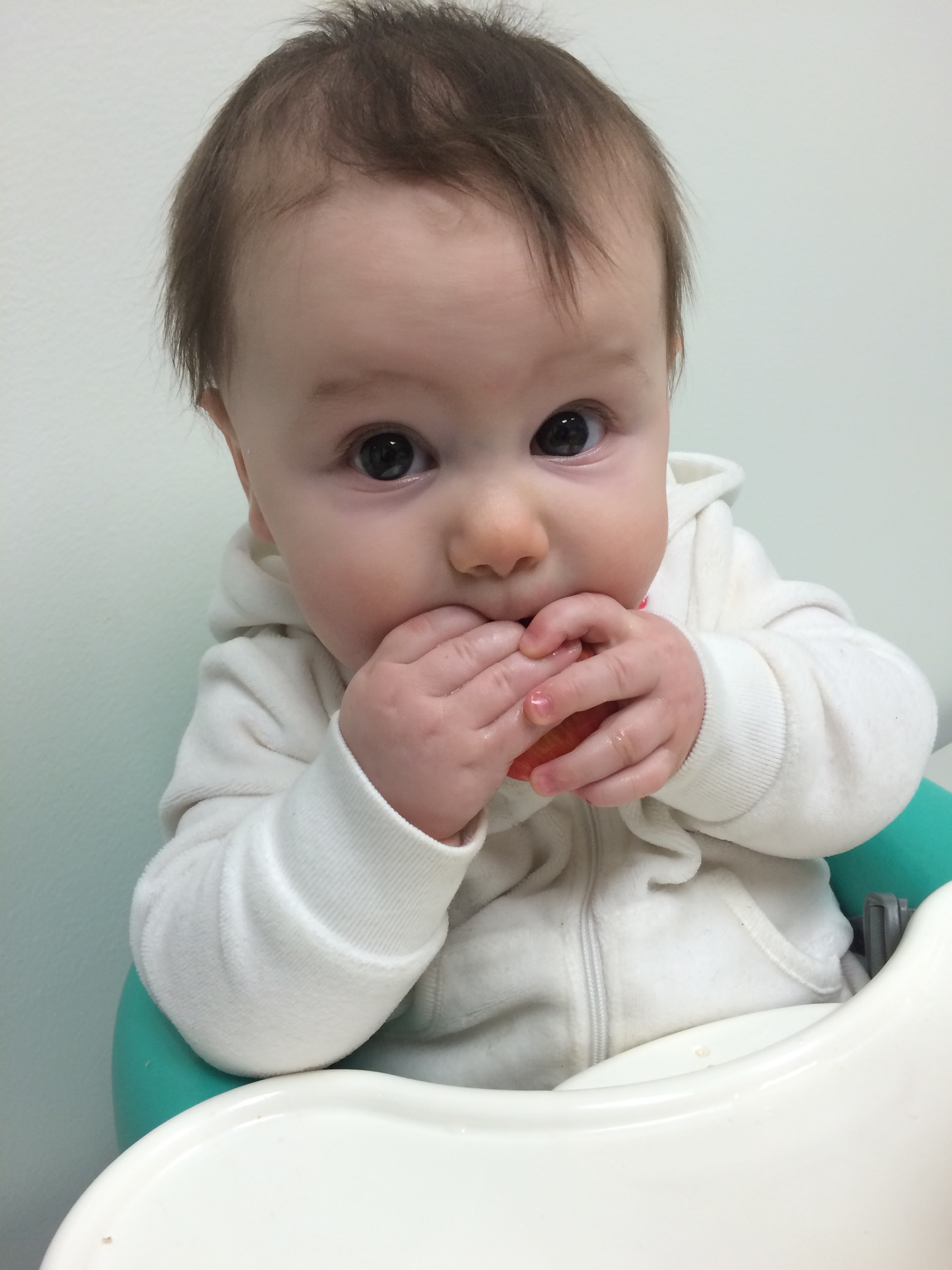 This morning, Charlotte ate one steamed mini carrot, a quarter of an apple slice and half a piece of toast! Yay!