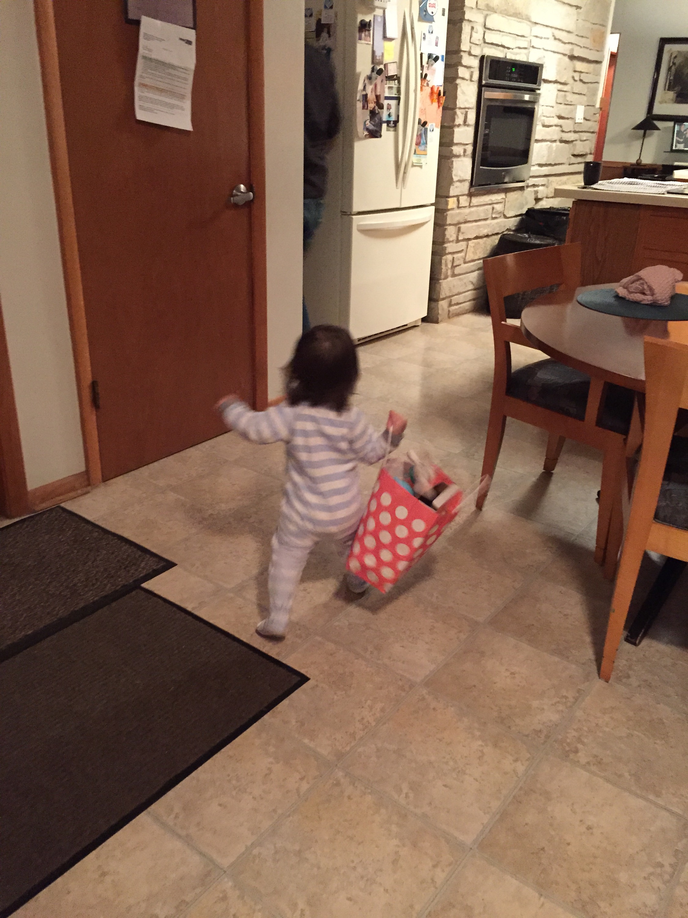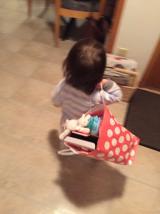 When it came time for presents, Charlotte absolutley LOVED opening her gifts and found a ridiculous amount of joy lugging around the gift bag containing all of her new items. In fact, she hasn’t stopped lugging around said gift bag.