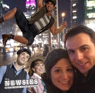 After sharing some berries for dessert, we glanced at our clock to see that somehow we had let time get away from us and our show was starting in 9 minutes. We quickly paid the bill and started running to the show. Of course, in the excitement and chaos, I directed us to the wrong theater, which caused a slight delay. But again, we somehow made it JUST in time to use the bathroom and get to our seats right as the first number of NEWSIES began.